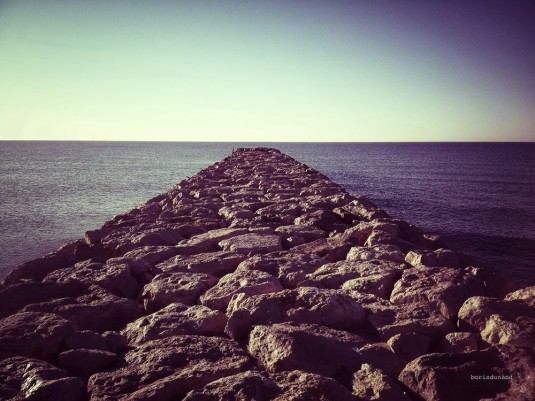 Assis tout au bout d’une jetée de pierres énormes, je songe à tout cela. La mer se cogne contre ces rochers éperdument. Elle essaye de comprendre. Le réel la rend misérable. Elle s’éclabousse en fureurs, s’apaise en roulis, repars vers l’horizon tranquille. Les bords de nos rêves sont friables.