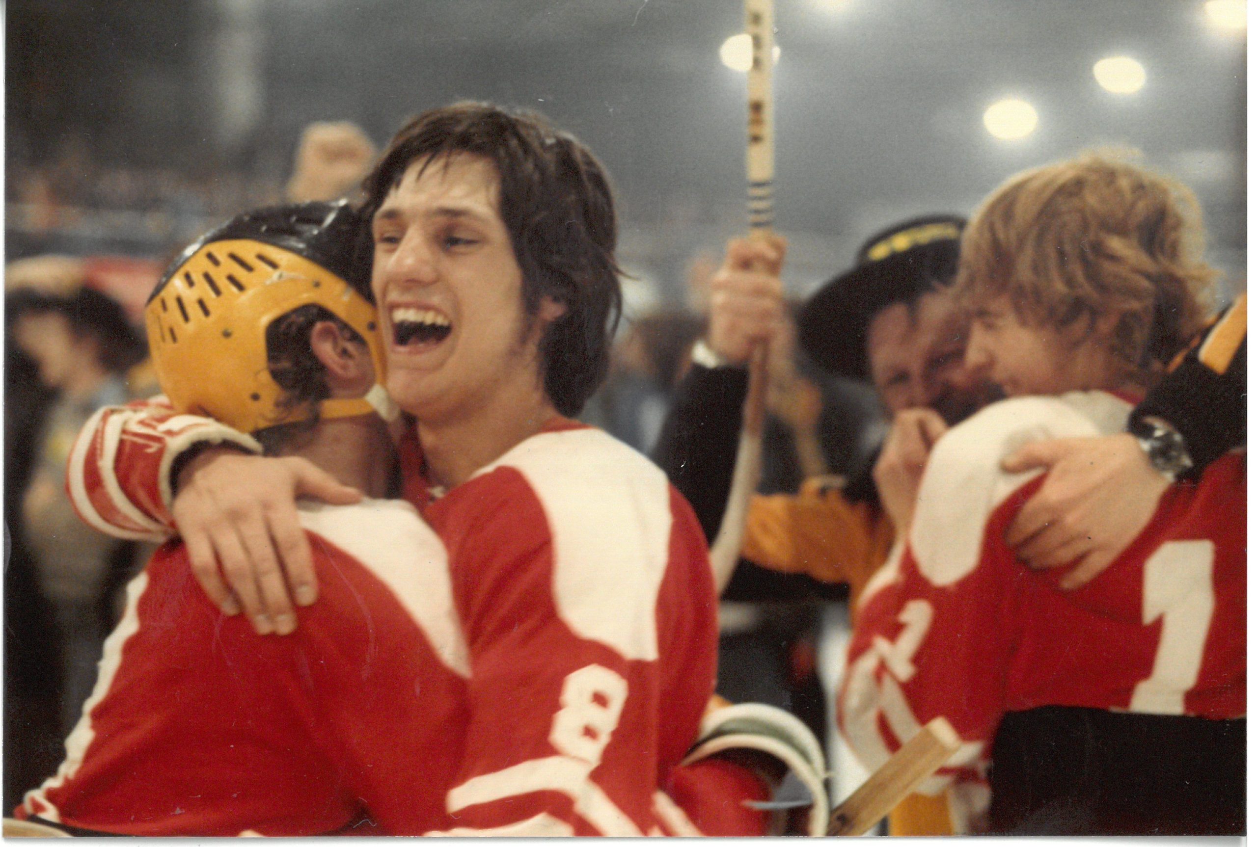 Les joueurs du HCA fêtent leur ascension en première ligue en 1978. (Archives privée de Jean-Claude Barras)