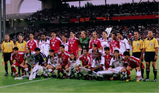 Coupe du Monde 1998, États-Unis – Iran 1-2 : dernier affrontement entre les équipes nationales de ces deux pays. Les joueurs posent, ensemble, pour la traditionnelle photo d’avant-match afin de démontrer que le football peut passer outre les tensions politiques !