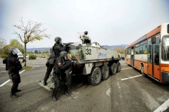 Bon, allons un peu plus loin. Vous avez vu, Genève a sa « police de l’extrême » habillée tout de noir avec la cagoule et se postant à l’entrée de véhicules comme devant des dark-room. You want to come in? Leur regard invite à s’approcher. Venez voir ce qui vous est caché. Venez voir qui peut intervenir à tout moment, entrer partout, jaillir de nulle part. Attention, pour voir, faudra payer. Combien au juste le petit plaisir? On ne sait pas, c’est secret… vous reprendrez bien une coupe de champagne; comptez voir un petit million pour voir… Genève a sa police de l’extrême, mais le Jura aussi (le GITE), Vaud (le DARD, ah bon), Fribourg (le GRIF), Neuchâtel (COUGAR, tiens tiens). Comme si cela ne suffisait pas, l’armée ET l’autorité de la police judiciaire fédérale ont aussi leurs crazy horses. Mazette. Cafouillages garantis lors de chaque opération (une fois tous les 5 ans). C’était le cas, par exemple, lors du ratage face au forcené de Bienne en 2010 qui avait pu partir tranquille de chez lui au nez et à la barbe des barbouzes avant d’être arrêté par une… habitante. Chaque canton désire ses Rambos, peu importe le prix à payer. L’addiction est irrépressible, peu importe l’addition. Ils sont si jolis dans leurs costumes tout noirs, avec une cagoule si seyante. De quand date leur dernière intervention? Euhhhh….. à Genève en 2008 pour sécuriser les matchs de l’Eurofoot selon les mauvaises langues, mais bon on ne minaude pas son petit plaisir secret et coquin. Il faut savoir se faire désirer et être prêt à intervenir au cas où, même si on empile les forces spéciales au kilomètre carré, les redouble avec celles des services étrangers lors des visites des dignitaires, c’est si sexy et vertigineux de jouer avec le danger. Heureusement qu’il reste l’aéroport pour s’envoyer en l’air, ça permet de justifier un corps de police en plus. Et hop. Mais on n’est plus dans l’érotisme là, plutôt dans la pornographie dure. Encore un petit million pour faire passer le tout?