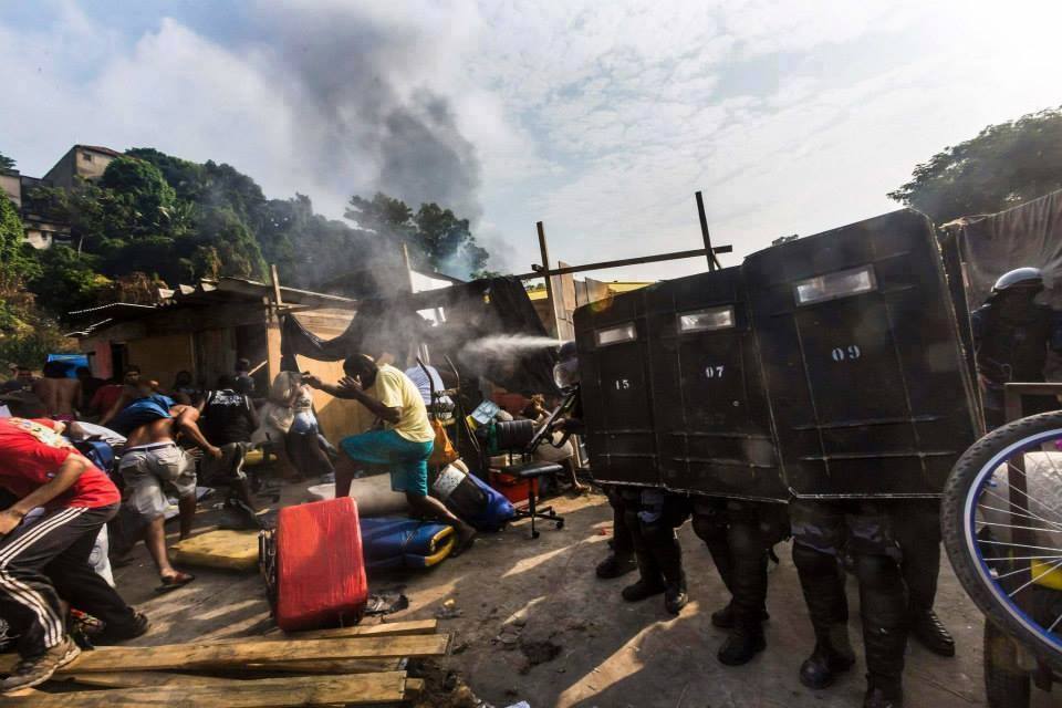 Évacuation d’une favela de Rio par les unités de police pacificatrices. Est-ce que ça vaut un dribble du multi-millionaire Ronaldo? © Abdeslam Kelai