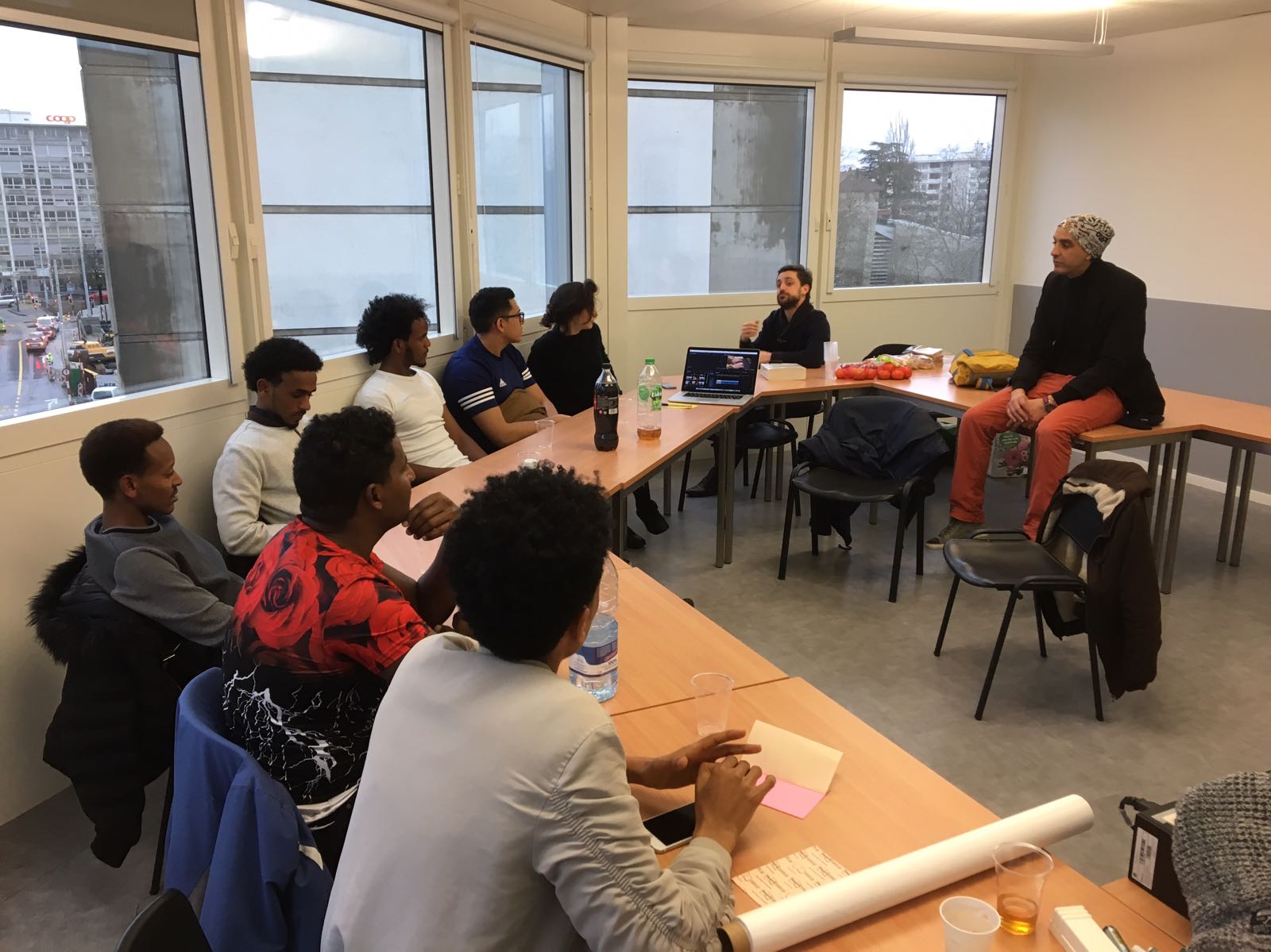 Le projet « Intégrations : Récits en Images » (IRIS) a démarré avec une série de ciné-clubs dans trois centres d’hébergement de Genève : les foyers de Frank-Thomas, d’Appia et du Grand-Saconnex. Chaque semaine, nous faisions découvrir des petites séquences de films et des courts-métrages aux résidents des foyers pour leur présenter le projet et apprendre à se connaître. Après avoir sélectionné une dizaine de participants, nous avons organisé sur plusieurs semaines des ateliers au Centre de formation de l’Hospice général pour leur apprendre les bases de la prise d’images, de la prise de son, du montage et de la création d’un récit. A l’issue des ateliers, les participants ont été répartis en plusieurs petits groupes sous la supervision des professionnels pour tourner et monter leurs courts-métrages. Que cela soit devant ou derrière la caméra, les participants ont ainsi contribué à toutes les phases de réalisation de leurs films. Le résultat final sera présenté au grand public le jeudi 15 mars prochain, à 19h, à la Maison des arts du Grütli (salle Langlois), dans le cadre de la programmation officielle du FIFDH. La projection sera suivie d’une table ronde sur l’intégration avec plusieurs acteurs du secteur.