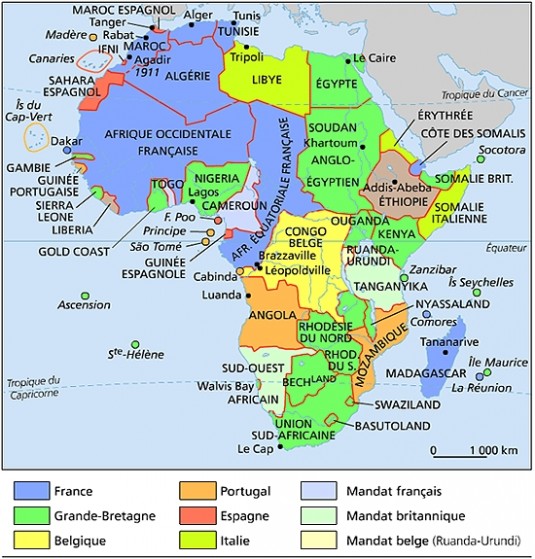 En envahissant ces régions, les différentes puissances coloniales participèrent évidemment à un triste affrontement pour le prestige de leurs empires respectifs. Mais elles cherchèrent également à extraire les abondantes ressources naturelles présentes, à commencer par l’Homme, puisque l’esclave fut une importante marchandise coloniale. Pour ce faire, les Européens remplacèrent les pouvoirs en place, souvent faibles, par de puissantes institutions extractives, contrôlées par des hauts commissaires délégués. Ces institutions, pour nombre de pays africains, signaient la naissance d’un véritable État centralisé, les Européens assurant un contrôle homogène des territoires en s’arrogeant les services des chefs locaux contre monnaie sonnante.
