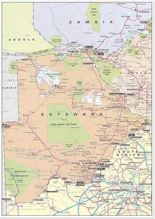 Le Botswana fut largement épargné par ce type d’institutions. Les auteurs de Why Nations fail citent un haut-commissaire britannique : « Nous n’avons aucun intérêt dans ce pays au nord du Molope [le Botswana] (…) nous le protégerons juste des pirates et des autres puissances extérieures, en y faisant le moins d’administration et d’installation possible ». Le pays, sans ressources avérées à cette époque et sans accès à la mer, avec un nombre d’habitants au mètre carré parmi les plus bas au monde, donc peu exploitable, n’intéressait personne.