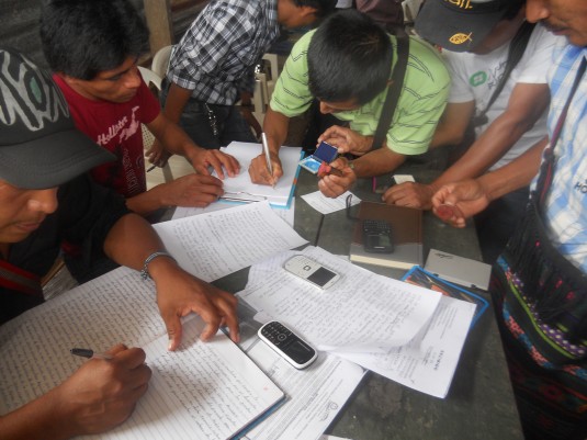 Dans un contexte de pression constante, le directeur des projets de développement de l’INDE a envoyé, le 18 octobre 2013, une invitation aux Comités de Développement des Communautés (COCODEs) et aux organisations sociales les accompagnant pour une réunion privée dans la capitale afin de « partager les expériences de génération d’énergie propre »7. Les COCODEs, en accord avec leurs communautés respectives, ont décidé à la place d’inviter l’INDE à venir présenter son projet dans le cadre d’une réunion publique, afin que chaque membre des communautés concernées par la construction du barrage entende directement de la bouche des représentants de l’INDE comment ils vont être affectés. Quatre réunions ont été organisées dans quatre lieux différents, mais l’INDE ne s’est présenté finalement qu’à la dernière, le 13 novembre 2013.