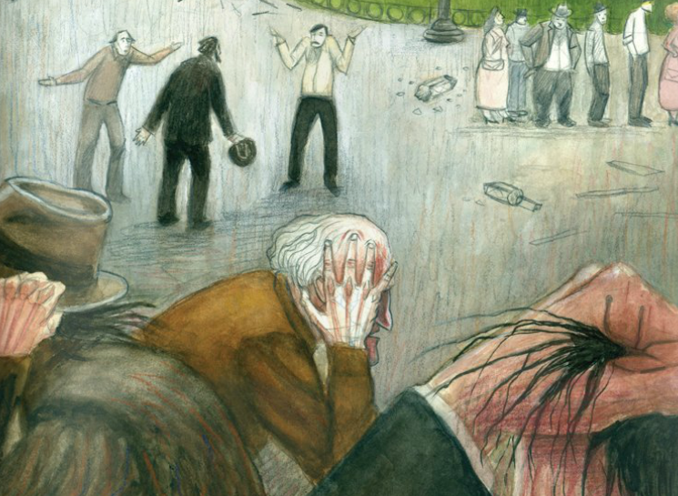 Pourtant, lorsqu’il atteignit la place du village, il ne pouvait pas croire ce qu’il voyait. Il pensa même qu’il s’était trompé de chemin et qu’il était dans un autre village. Les lieux ressemblaient à un champ de bataille. Les lampadaires et la fontaine étaient détruits. Les villageois tournaient en rond en parlant tout seuls, et des groupes d’hommes et de femmes se disputaient.