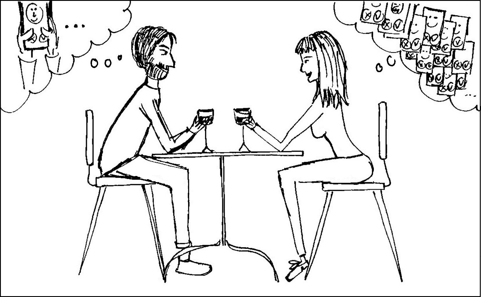 Lorsqu’on décide de passer à la rencontre dite physique, suivant comment a évolué la conversation les jours précédant ledit rendez-vous, se dévoile alors un peu de l’hypocrisie de Tinder. On a tout misé sur l’esthétisme des photos de profil et maintenant, notre Tinder date nous verra en vrai, avec nos petits défauts, nos intonations de voix et nos manies qui ne manqueront pas d’étonner, quand on passe de l’écran à la table de bistrot. C’est là que le fait de se convaincre qu’on y est uniquement pour rigoler commence à se déliter. Pourquoi ce petit emballement cardiaque à l’approche du point de rencontre ? Y-a-t-il vraiment des personnes qui se trouvent sur Tinder et que l’application a heureusement rapprochées ?