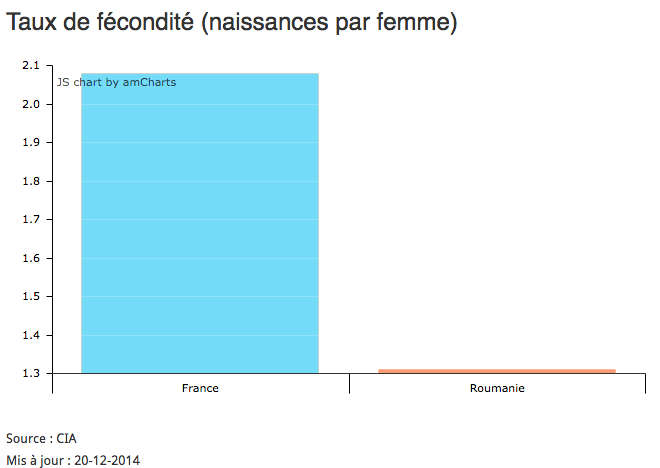 6) Taux de fécondité de la France et la Roumanie, https://fr.actualitix.com/trouver-un-graphique-interactif.php, [En ligne], consulté le 6 juin 2017.