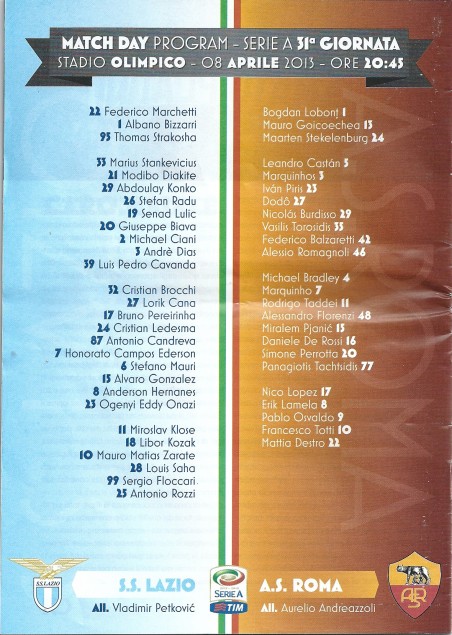 STRADERBY, Numero Unico dell’Aprile 2013 in supplemento a : News Roma Tv. Distribué gratuitement devant le stade le jour du match