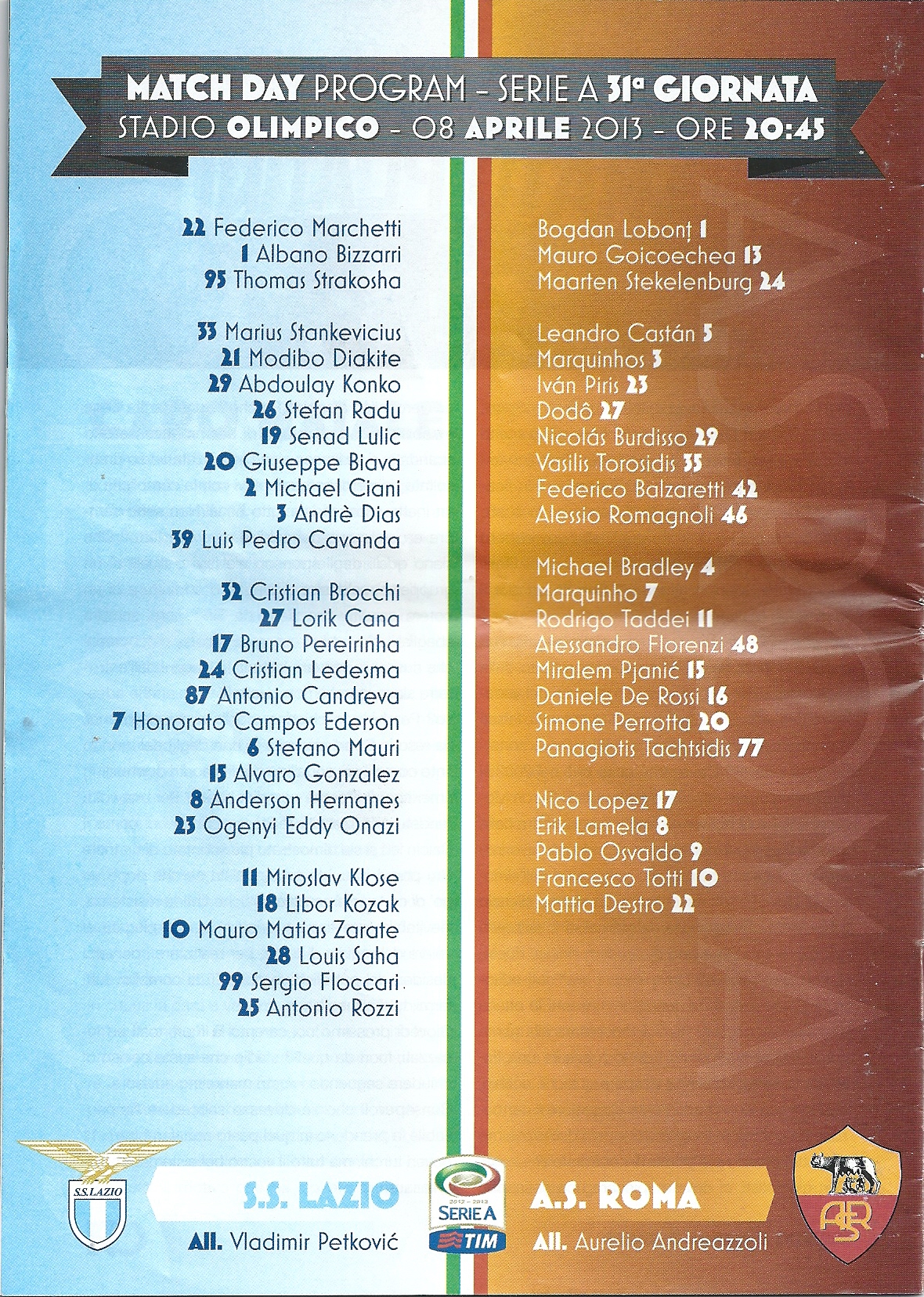En début de deuxième mi-temps, Hernanes rate l’occasion de donner deux longueurs d’avance à son équipe en manquant totalement la cible sur un penalty. Afin de finir la soirée en beauté, il se paye le luxe de commettre une faute dans sa surface qui est sanctionnée d’un nouveau penalty par l’arbitre. Francesco Totti, lui, ne tremble pas. Il égalise pour son équipe et rejoint Da Costa et Marco Delvecchio au classement des buteurs dans un derby avec neuf pions. Le match se finit sur ce score de parité.