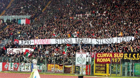 Match A.S. Roma-Livorno du 29 janvier 2006. Croix gammée et croix celtique en bas à gauche. © xxdrughixx.gionnavi.it