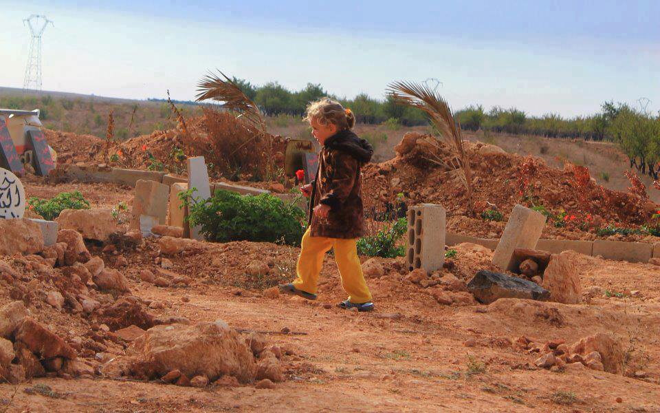 Une petite fille apporte une rose rouge au cimetière pour rendre hommage à son père décédé (c) Life for Syria