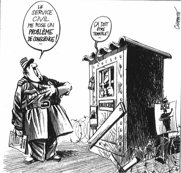 Nombreuses sont les personnes qui ont été emprisonnés durant des mois et/ou qui ont payé de lourdes amendes pour avoir refusé de servir l’armée suisse avant la mise en place d’un service civil en 1996. Le courage dont ils ont fait preuve pour faire valoir leurs convictions n’est pas étranger à cette évolution.
