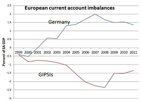 Tout est lié : la politique de rigueur allemande est une des causes du boom économique et de la crise subséquente des GIIPS. Ce fut une critique majeure de la politique allemande d’austérité, qui dit que l’Allemagne a créé une asymétrie au sein de la zone euro, asymétrie qui explique, en partie, la crise. En conséquence, certains économistes, tels que Paul De Grauwe, argumentent que l’Allemagne doit maintenant mener une importante politique expansionniste (donc, stimuler sa demande intérieure via l’investissement public) afin de permettre aux pays en difficulté de profiter du « moteur » allemand pour, par exemple, y vendre leurs exportations. Il semblerait que l’Allemagne ait finalement pris ce chemin-là, bien heureusement.