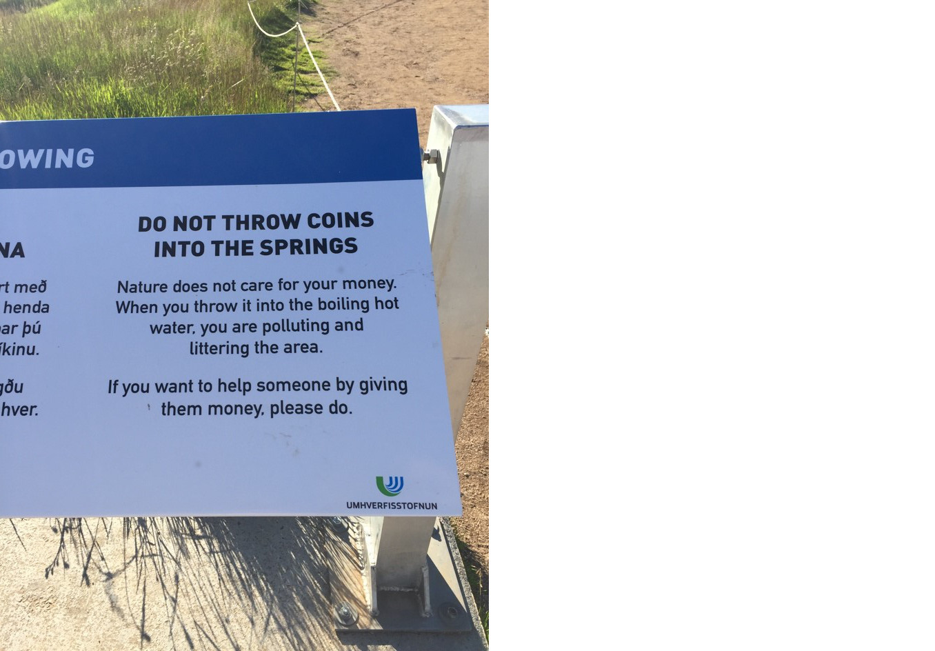 Il n’y a pas, pour l’instant, de surveillants ou de billetterie sur les sites touristiques : l’entrée est gratuite. On ne paie pas, par exemple, pour accéder à une cascade ou aux geysers. La seule intervention de l’Etat sur place se cantonne à des ficelles entourant les accès dangereux et des panneaux d’information invitant chacun, souvent avec humour, à faire preuve de responsabilité personnelle.