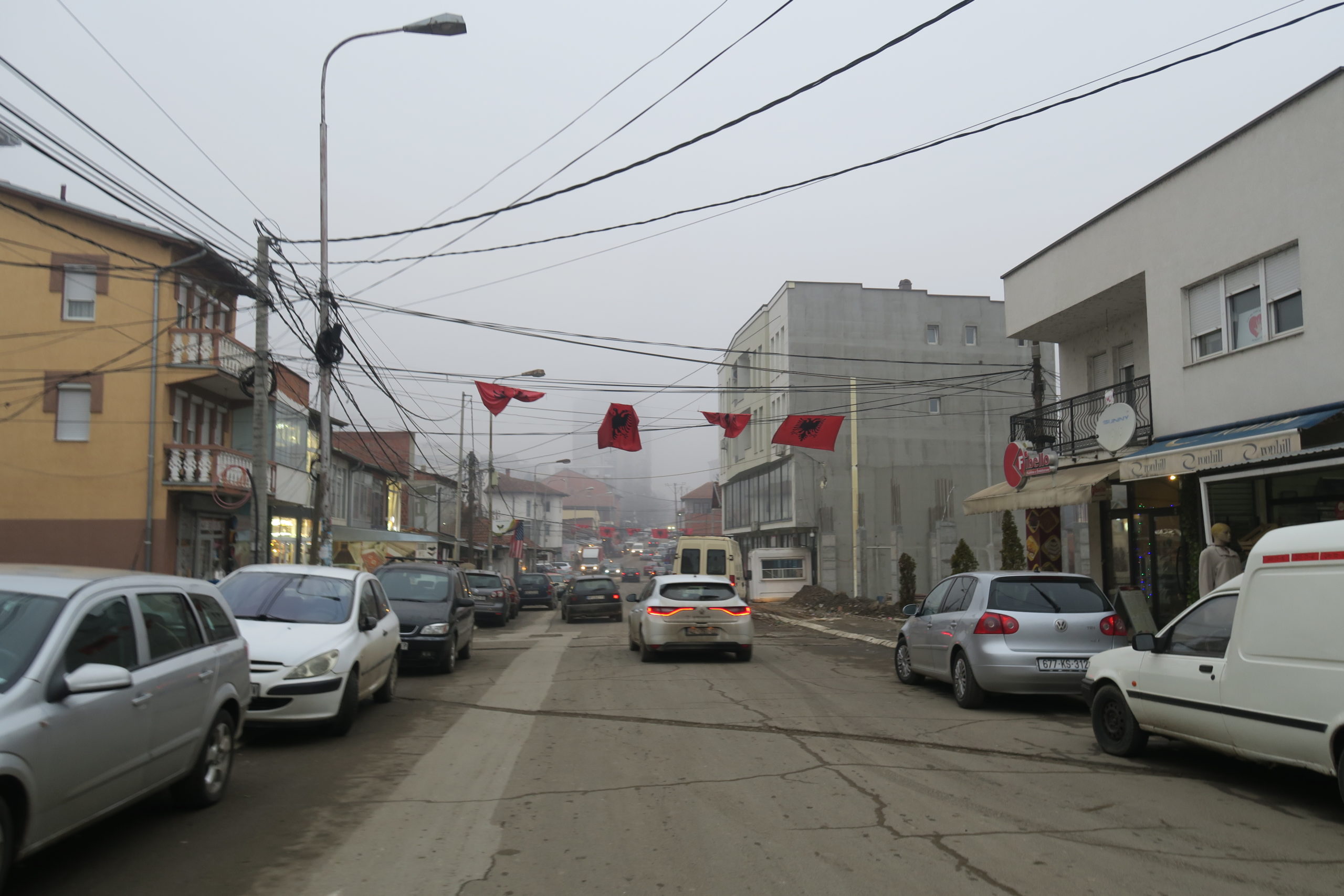 Des drapeaux albanais flottent dans le quartier du sud de la ville. [V.Geneux]