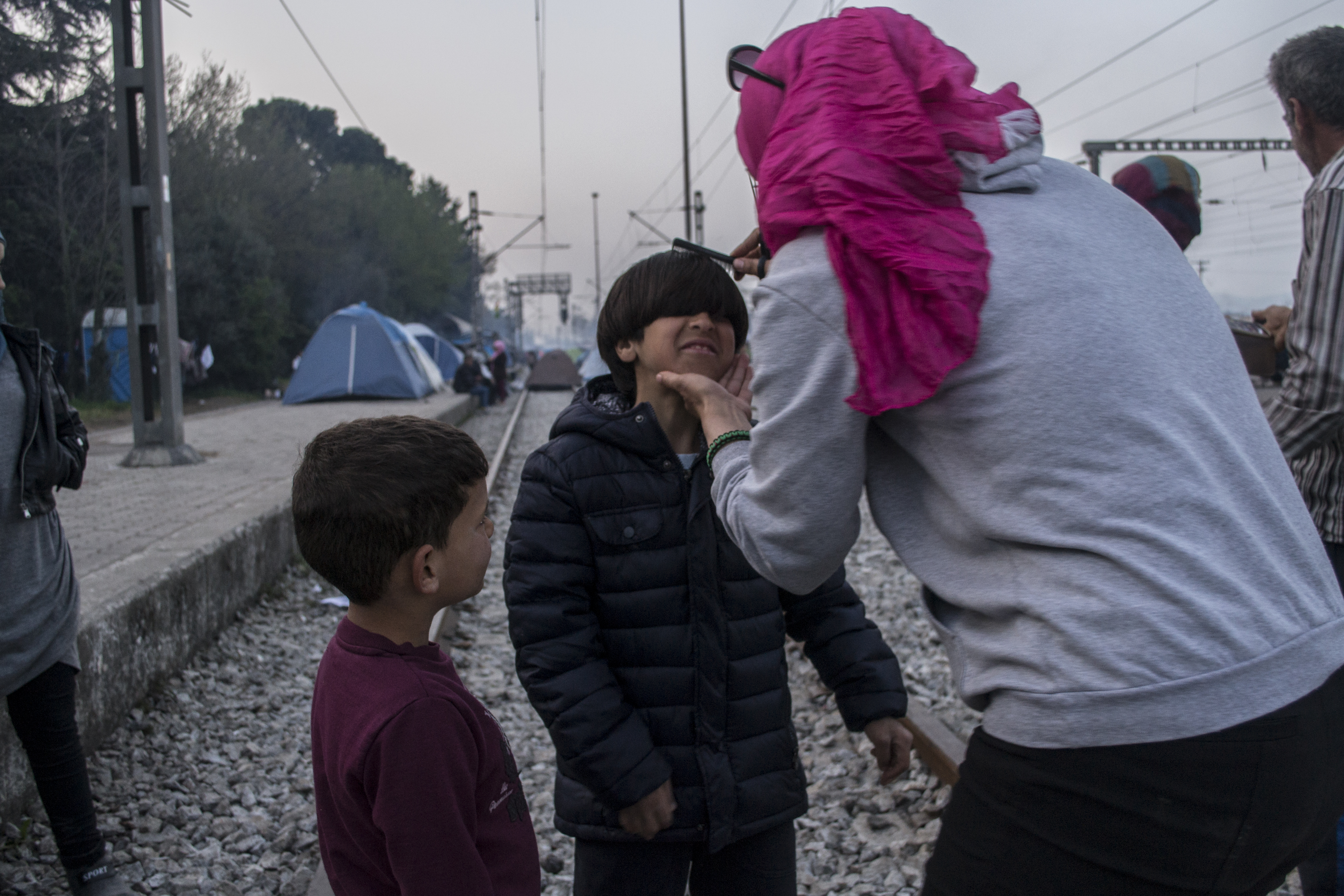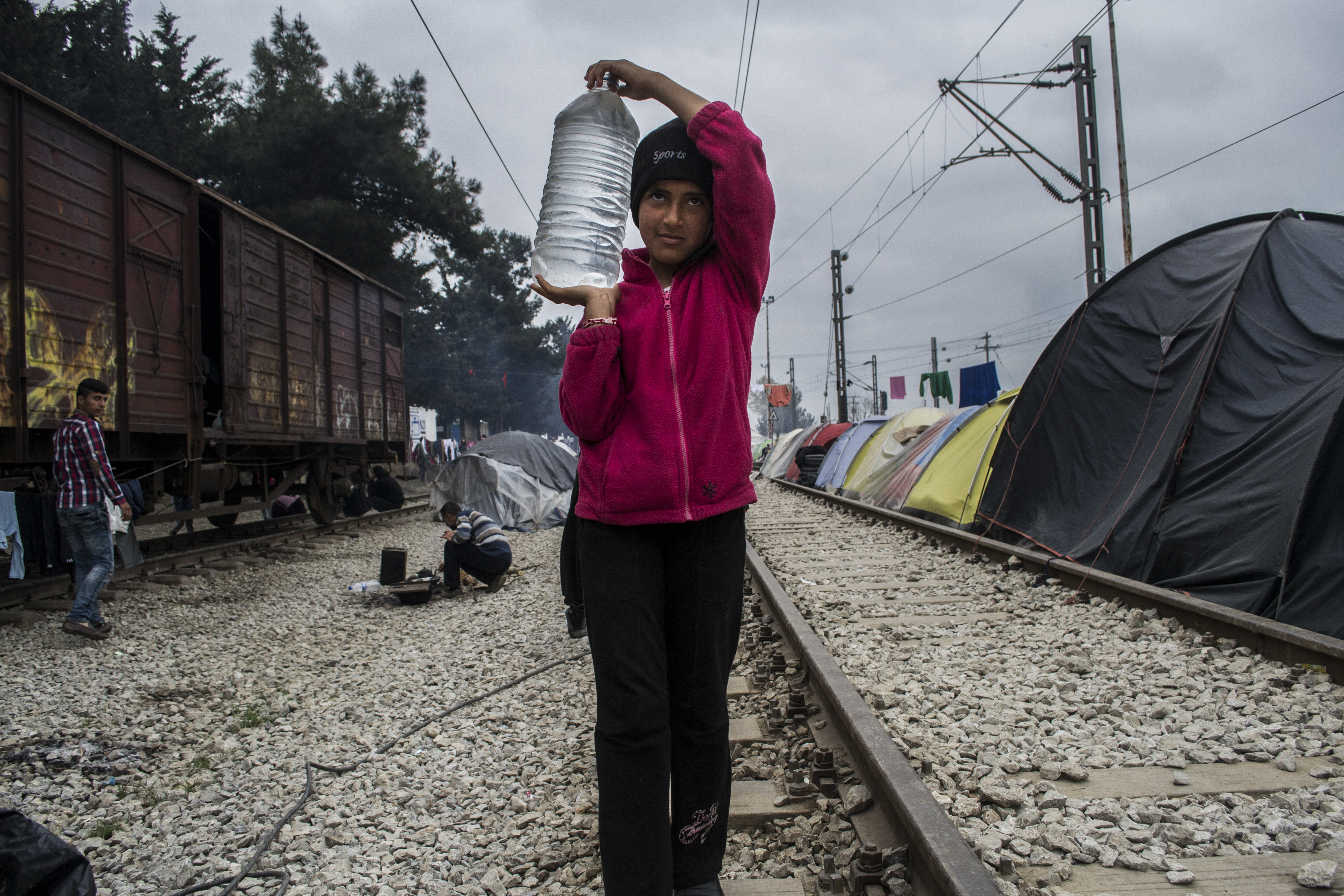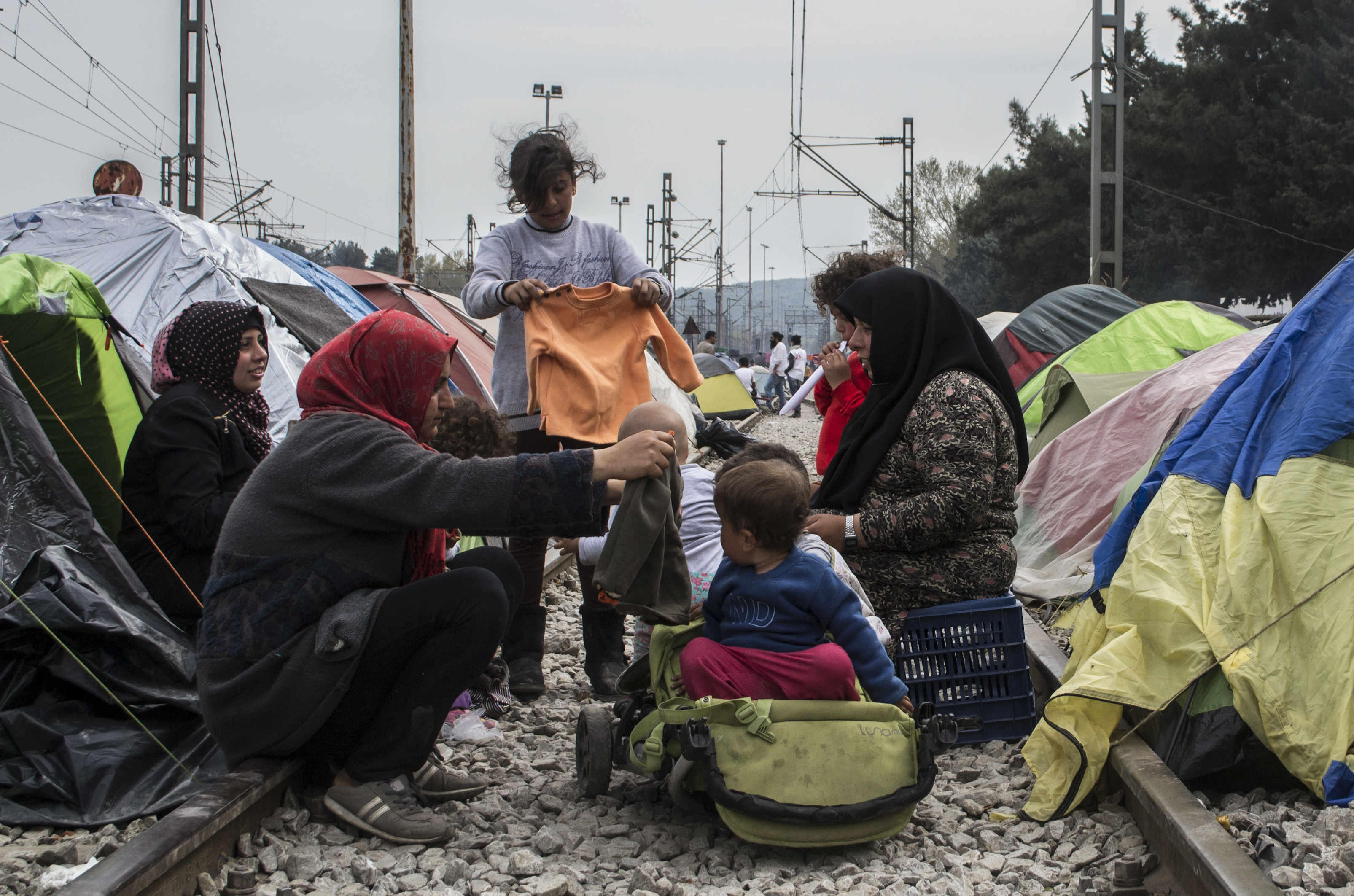 La première fois que je suis allée à Idomeni, j’y ai rencontré Wajd sur le chemin de fer, une jeune Syrienne d’Idlib, qui voyageait avec toute sa famille. Elle tenait encore dans ses mains le numéro inscrit sur un carton qui aurait pu lui permettre de traverser la frontière. Nous étions à la mi-mars, la frontière était fermée depuis une semaine, mais l’espoir de son ouverture poussait les gens à rester. C’était le jour de l’accord entre l’Europe et la Turquie. À Idomeni, 15’000 personnes avaient les yeux rivés sur Bruxelles.