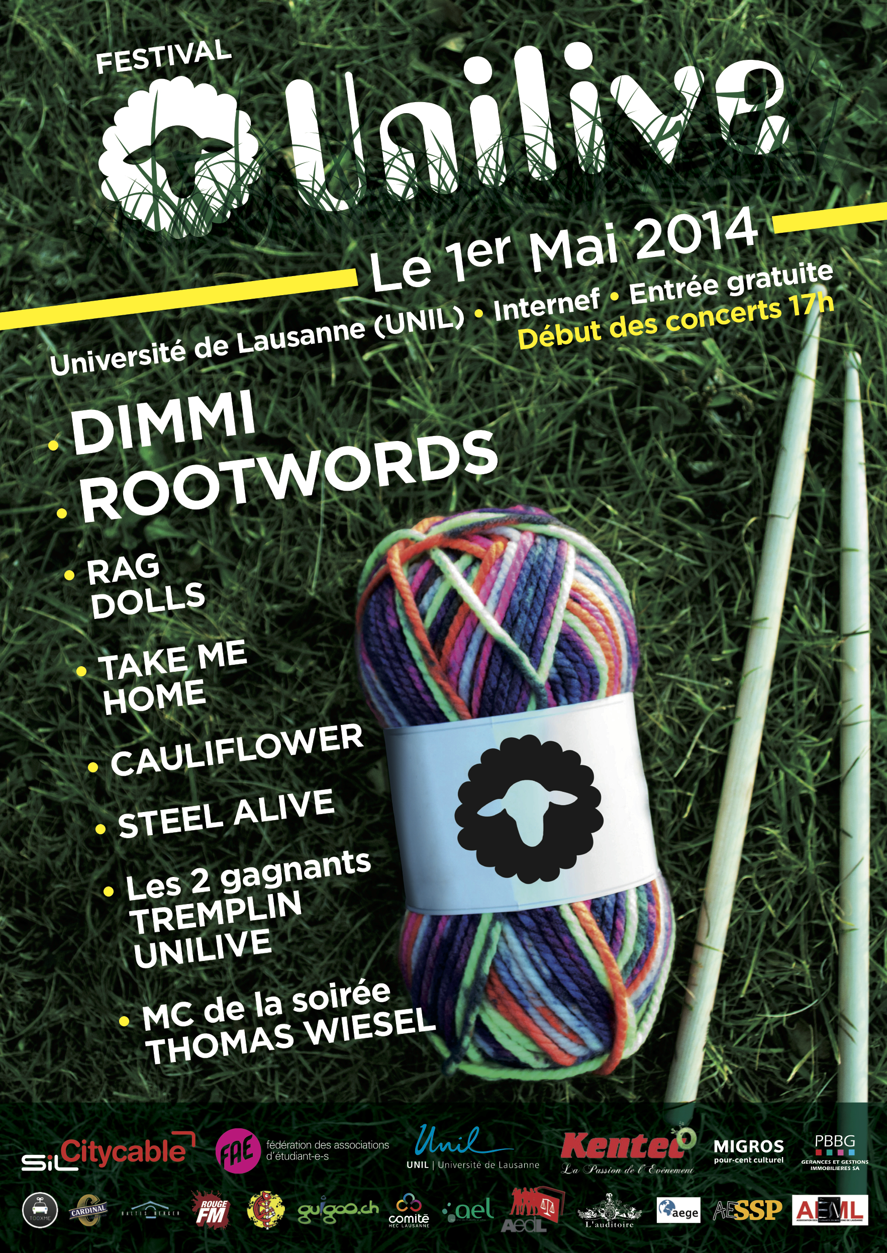 Cette année, des artistes qui ont fait leur preuve sur la scène internationale viennent décorer l’affiche du festival Unilive, tels que DIMMI et Rootwords. Divers artistes de qualité sont également attendus, dotés d’un répertoire allant du jazz au rock’n’roll, en passant par le pop-rock ou encore le dub flamenco avec les Steel Alive. Afin de donner la chance à des jeunes talents de se produire sur scène durant le festival, le comité a organisé un tremplin étudiant à Zelig, le bar étudiant de l’Unil. Parmi les quatre finalistes, deux groupes ont été sélectionnés pour jouer le soir du 1er mai: Macaô et les Scrapyards. L’un des objectifs de l’association est ici d’encourager la production artistique des jeunes étudiants lausannois et les aider à se faire connaître. Avec pour ambition de se développer, Unilive a décidé d’effectuer quelques changements par rapport à l’année dernière : un réaménagement de la place a été prévu dans l’optique d’étendre le site et de nombreux stands et animations ont été rajoutés pour répondre aux besoins des festivaliers. Un service de co-voiturage sera proposé pour ceux qui veulent continuer la soirée au-delà des derniers métros.
